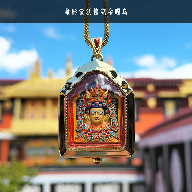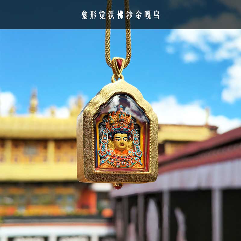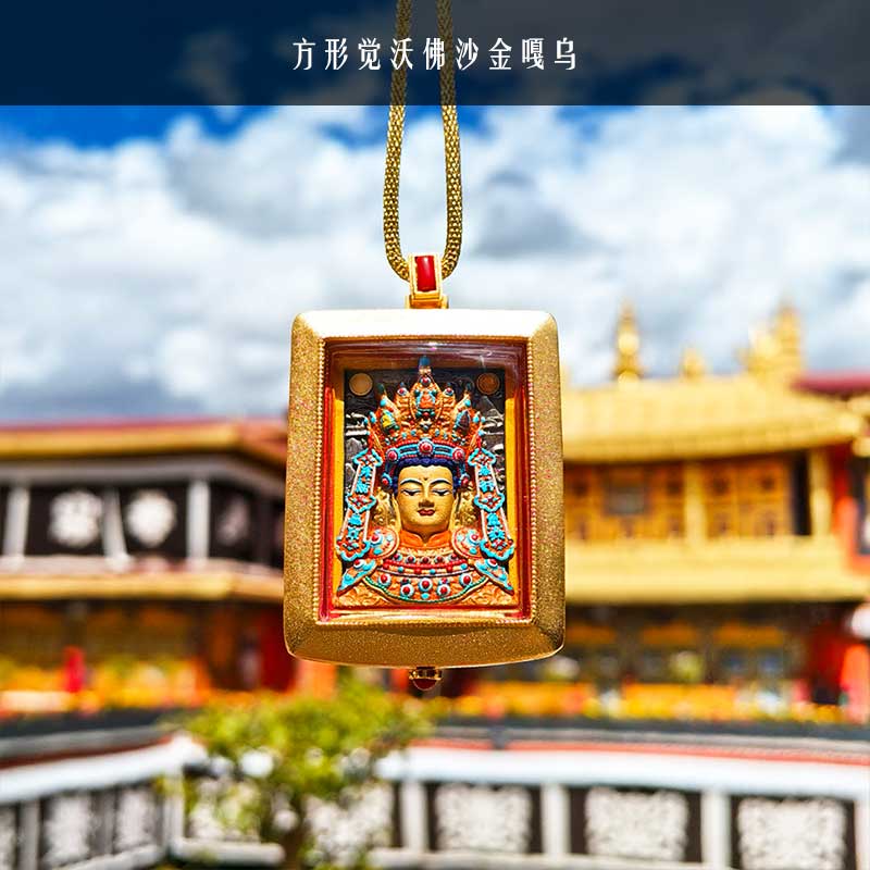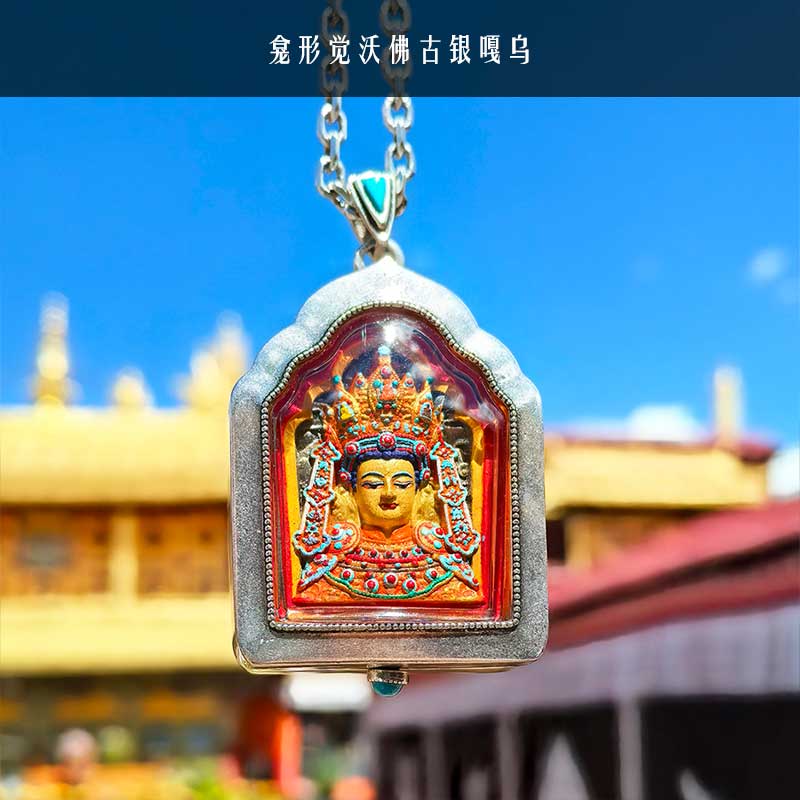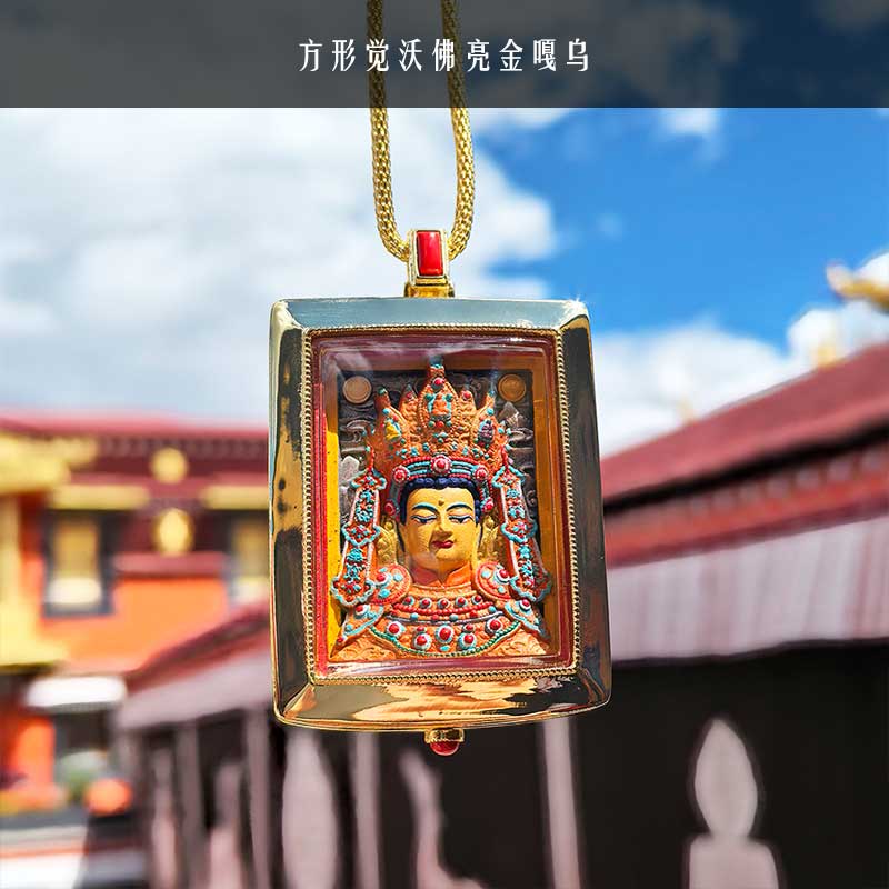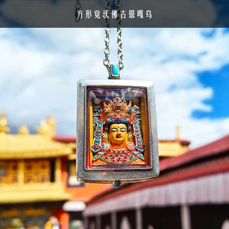 大昭觉沃佛擦擦佛像,制作特别精致,都是西藏拉萨这边的唐卡画师手绘的,正面是觉沃佛, 背面是双鹿祥轮和四句偈,有两种形状,一种是方形的,一种是龛形的,嘎乌外壳是铜底镀金、铜底镀银 龛形的,嘎乌尺寸高48mm,宽37mm,厚16mm 方形的,嘎乌尺寸高53mm,宽41mm,厚17mm