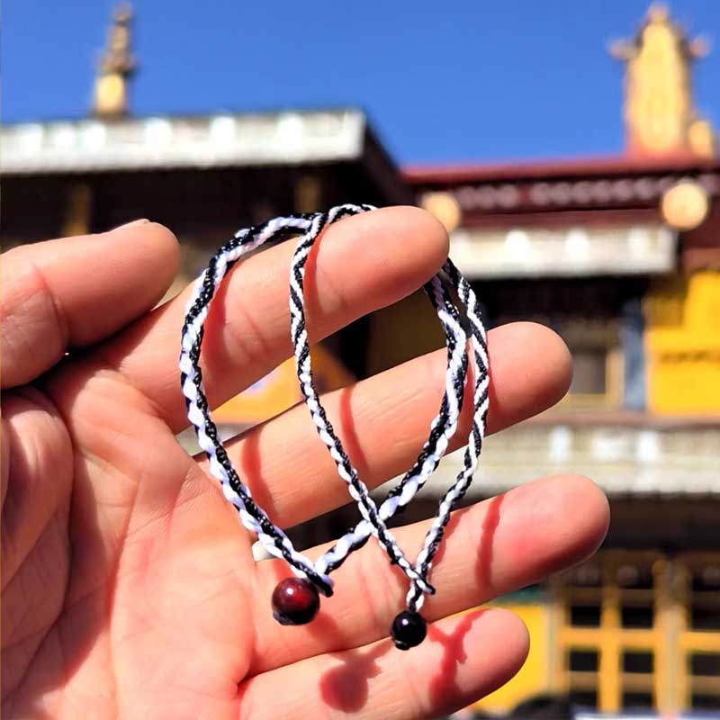 九眼金刚绳融入扎基拉姆加持力,强化招财与避煞双重功效,尤其受商旅人群推崇 九乘功德:九眼对应声闻、缘觉、菩萨等九乘佛法修行次第,凝聚智慧与慈悲的圆满成就。 金刚属性:金刚结象征“坚固不坏的佛性”,可断烦恼、摧魔障,赋予佩戴者破除逆缘的勇气。