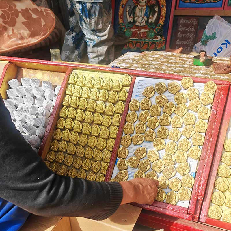 擦擦即用洁净之土塑成的小型佛塔、神佛像。它不仅是藏族宗教艺术的瑰宝,更是僧俗信众积累福慧资粮、 祈请加持、供养三宝的清净福田。我们深知这份源自土地、凝聚信念的功德意义非凡,特以无比恭敬之心,提供代制西藏传 统手工擦擦的服务,助您跨越山海,在圣地寺庙或佛堂内,塑造、供奉属于您(或您所祈愿者)的无上福田。